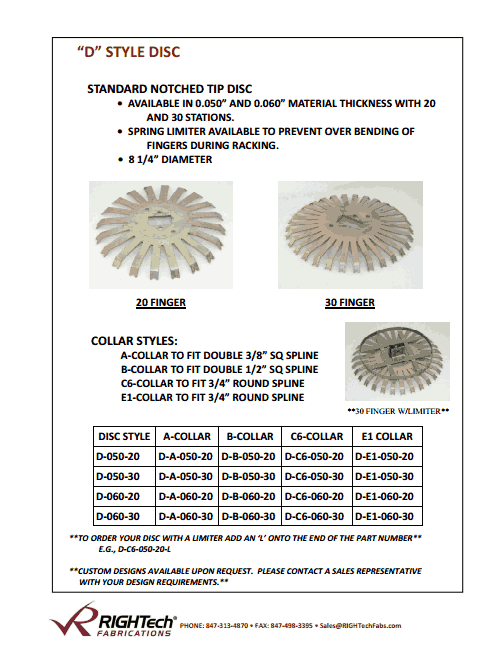 To order your disc with a limiter add "L" onto the end of the part number
