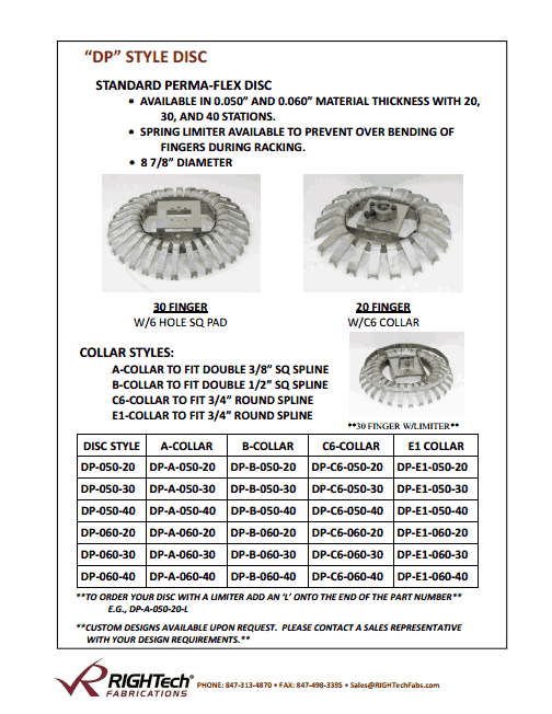 To order your disc with a limiter add "L" onto the end of the part number