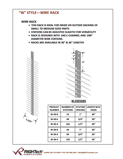 Rack is designed with 0.040" C-channel and 0.090" diameter wire stations.